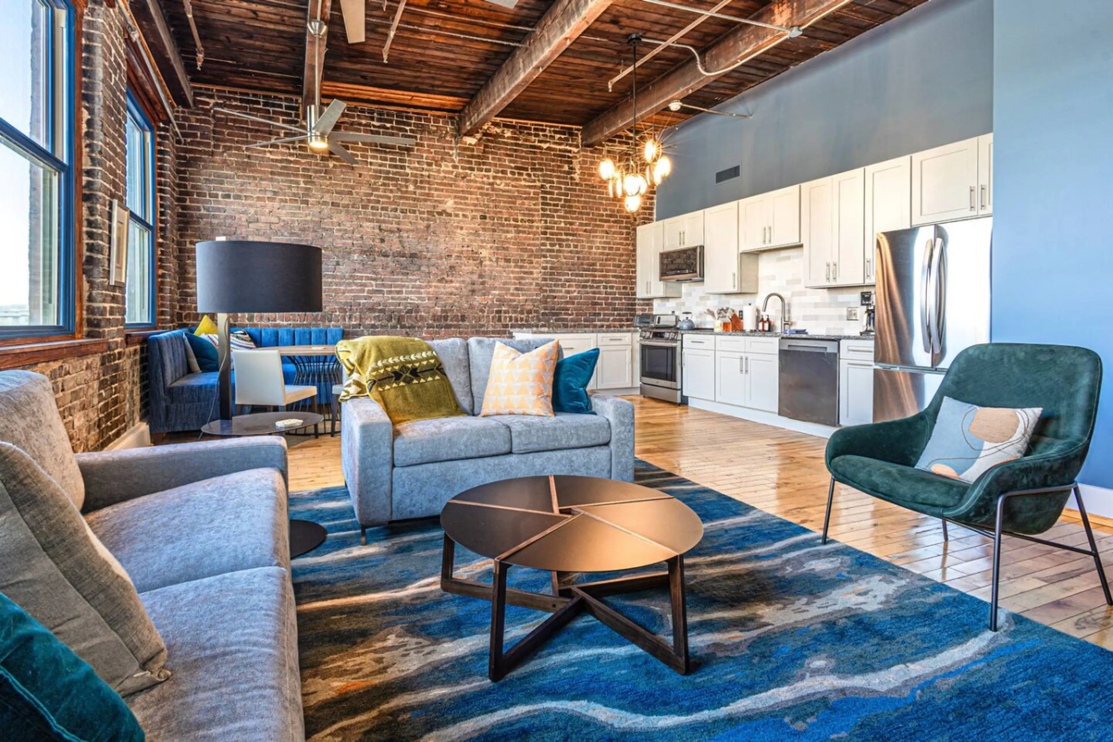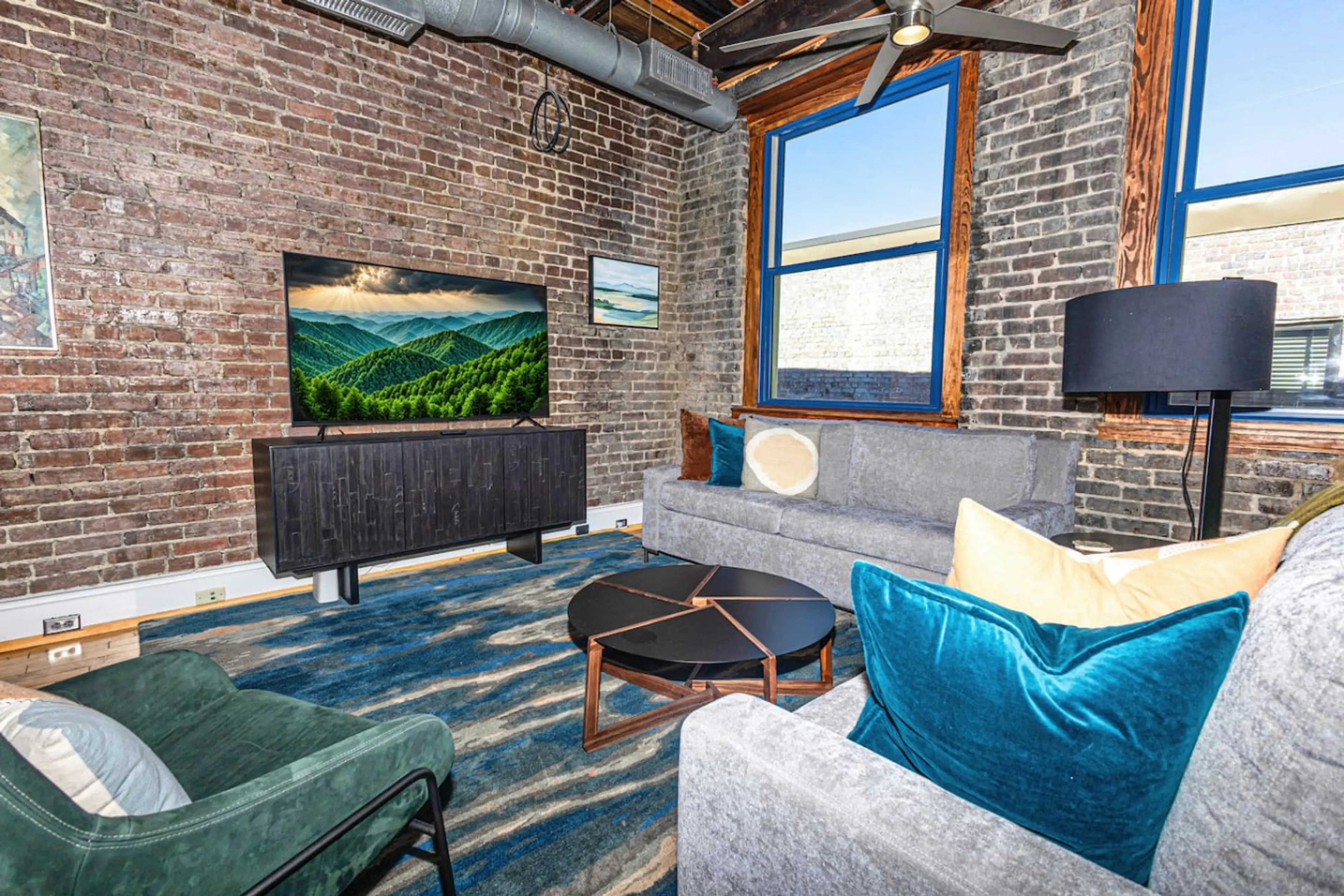 Stay in our stylish industrial loft at the historic Emporium Center in the heart of downtown Knoxville. This spacious 2BR/1BA went under a full renovation in 2026 and features exposed brick walls, high ceilings, hardwood floors, and large windows that fill the space with natural light. Enjoy a moder...